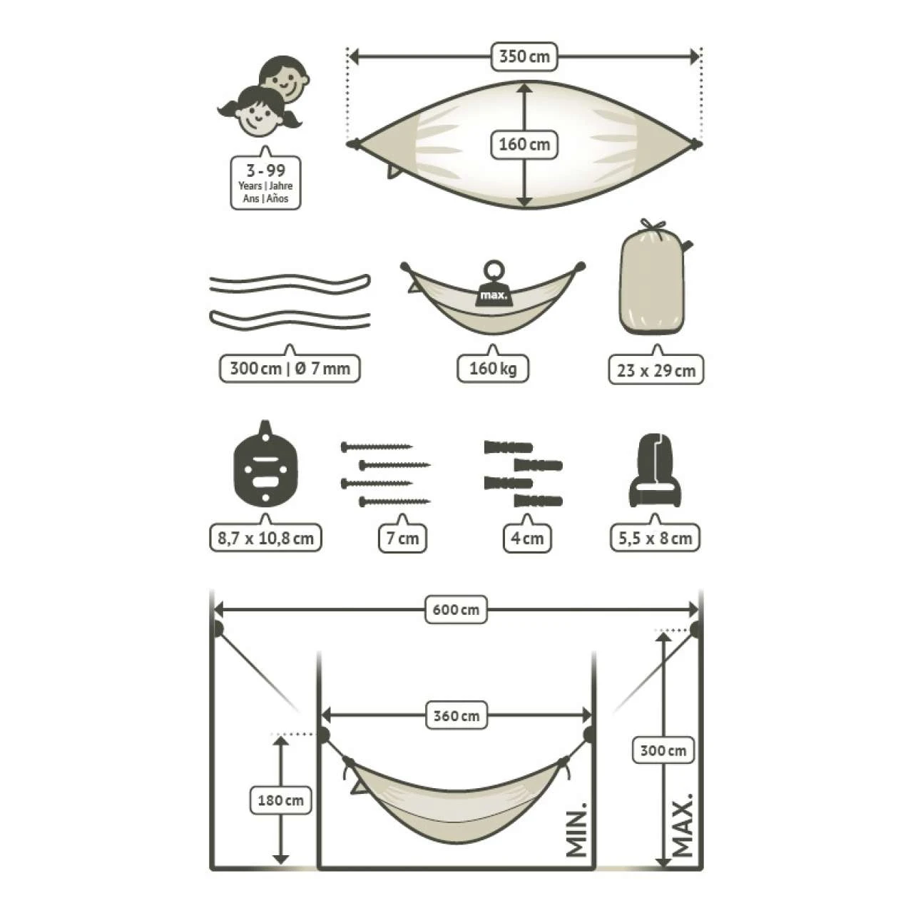 – benötigter Mindestabstand zum Aufhängen: ca. 200 cm